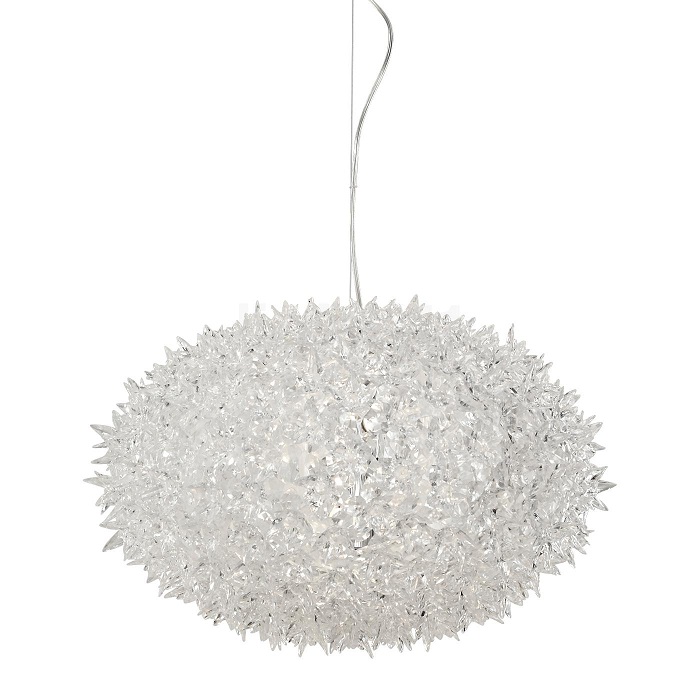 Candeeiro de suspensão de forma elíptica composta com flores cintilantes, puras e belas como o cristal.