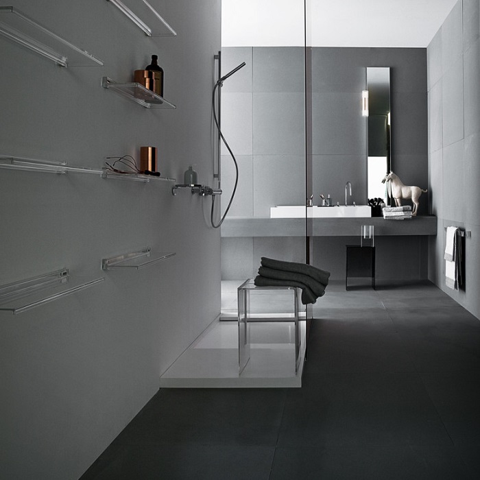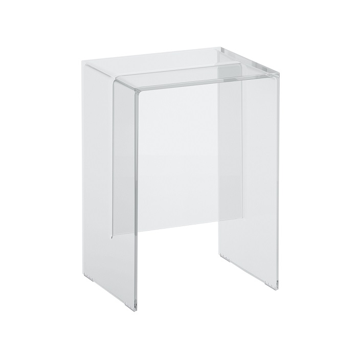 Mesinha de apoio de plástico transparente e de pequenas dimensões, prática, funcional e versátil.