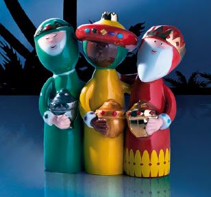 Os 3 Reis Magos em porcelana pintada à mão, que fazem parte da coleção "Eternity Baby".