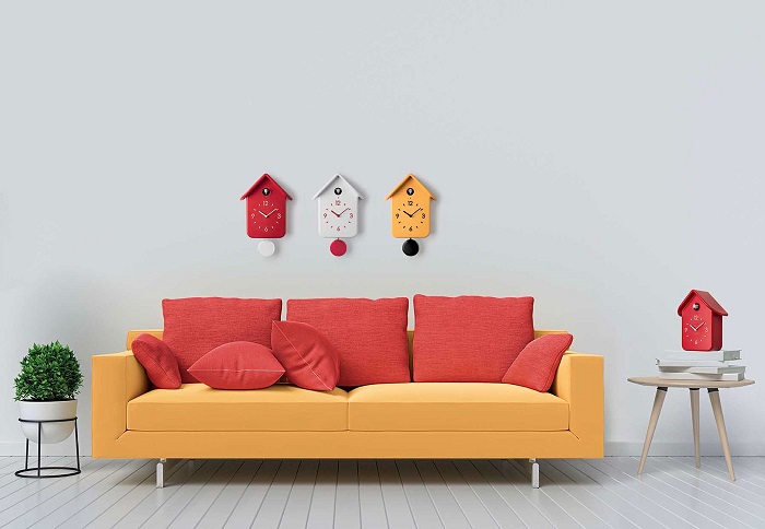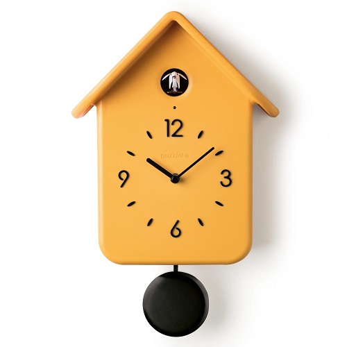 O relógio QQ é um restyling pop do relógio de cuco tradicional que pode ser colocado na parede ou pousado numa mesa, graças ao pêndulo removível.