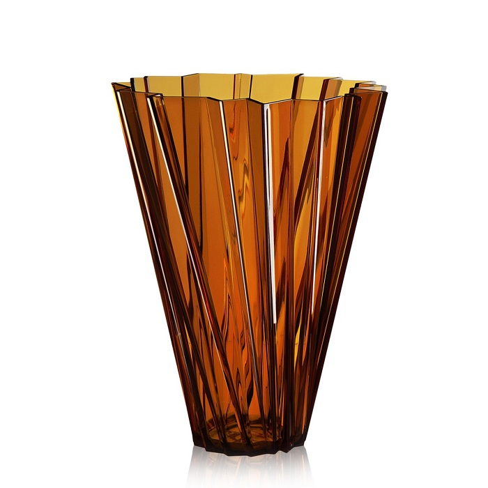 Um vaso lapidado, que se abre desde a base até ao topo como se impelido por um movimento vertiginoso